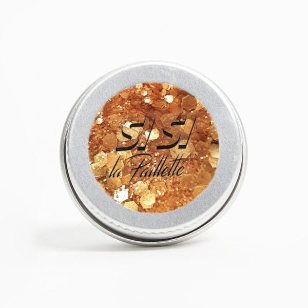 Un mélange de paillettes à base de plantes nacrées Queen du Désert avec une base caramel et or pâle, une touche cuivrée, de toutes les tailles, et surtout 100% sans plastique.