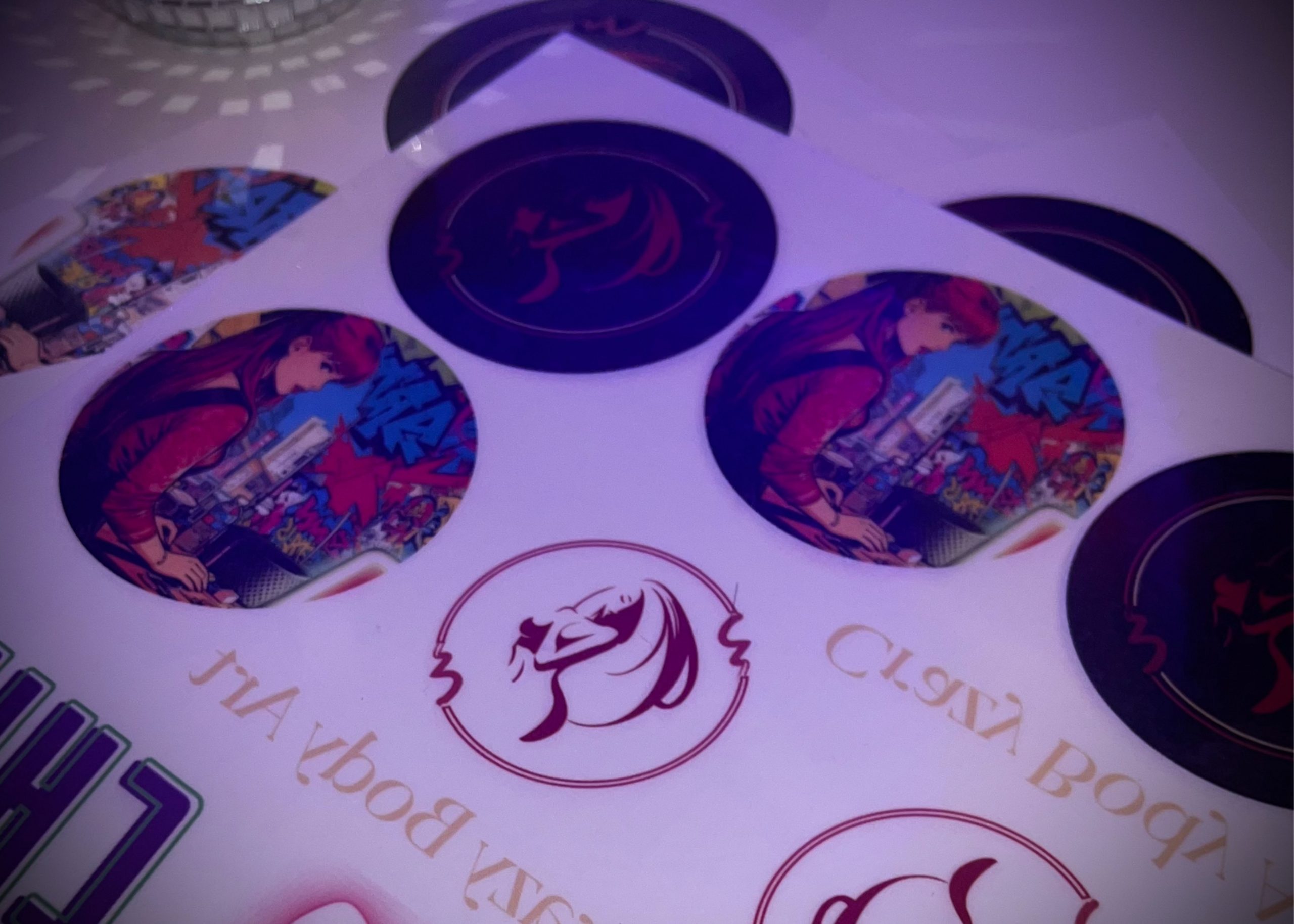 Commande par lots puis envoie avant chaque évènement. Les tatouages en décalcomanies sont créés à la demande, en respectant les motifs.